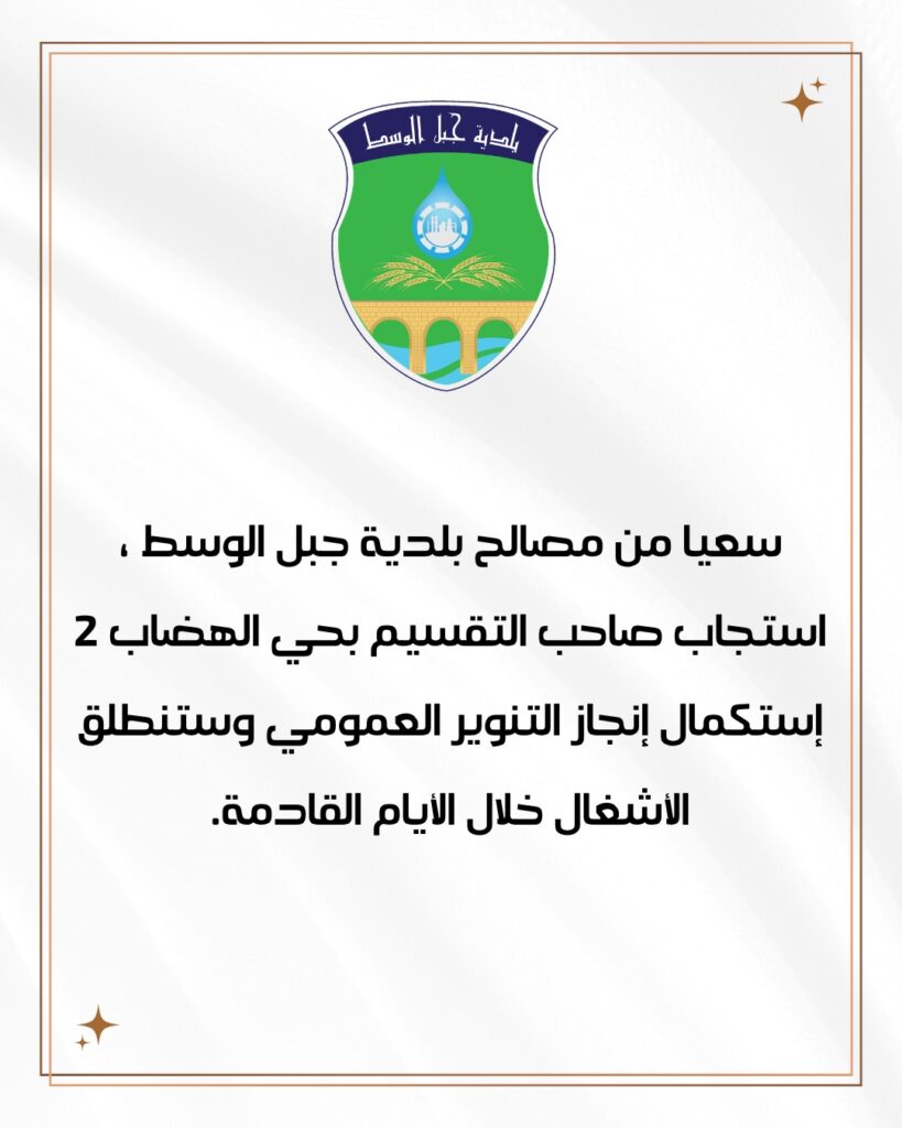 مشروع صيانة وتوسعة شبكة التنوير العمومي بجبل الوسط المدينة
